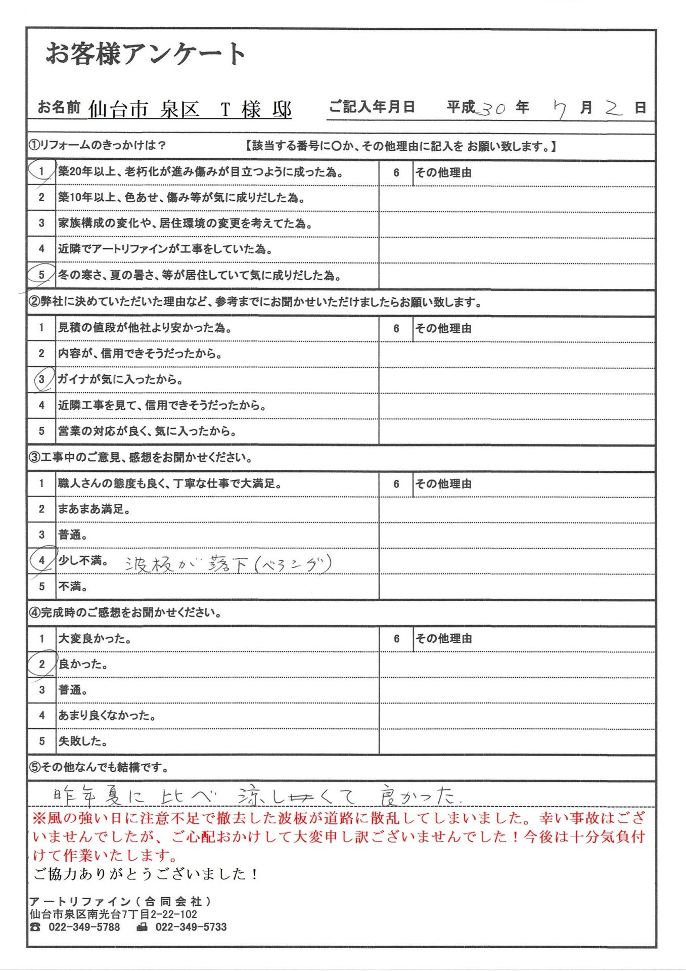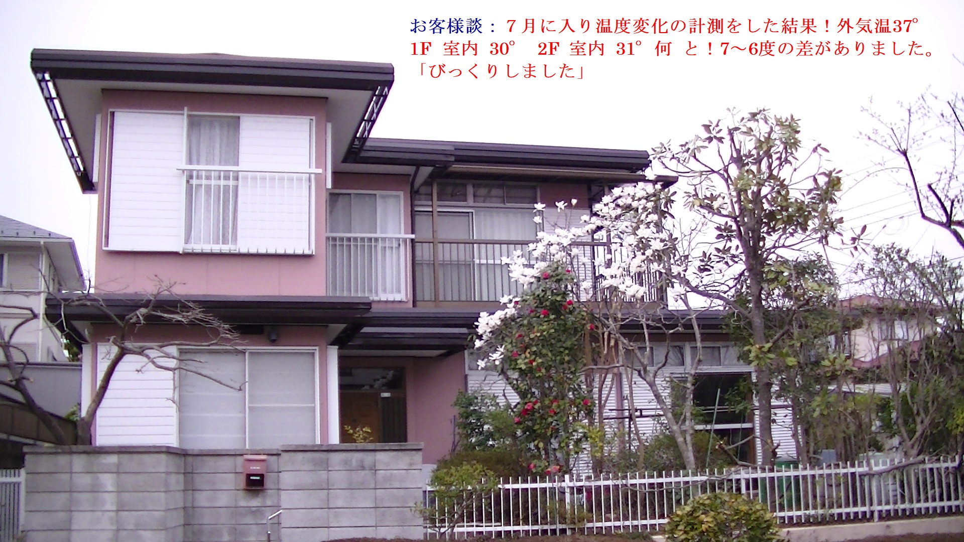 | 説明 | 施工後:室外温度37°1F室内温度31° 2F室内温度31° 6°~7℃の差がありました! お客様も去年より涼しくなり喜んでいました! 有難うございます。 |