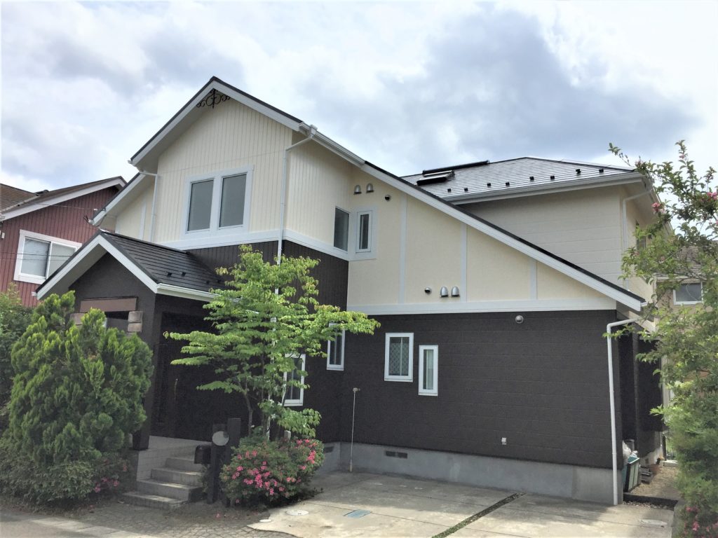 外壁塗装でツートンカラーへ。外壁・屋根の塗り替え。宮城県多賀城市にて