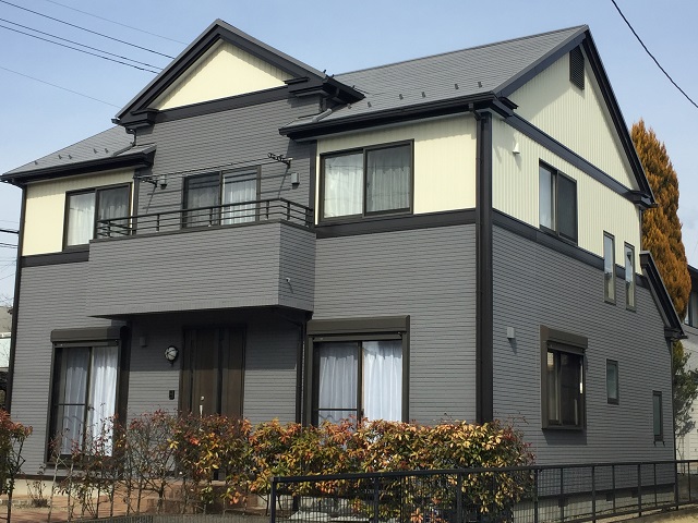 外壁の塗り替えでベージュからグレーへ。シックでモダンにリフォーム。