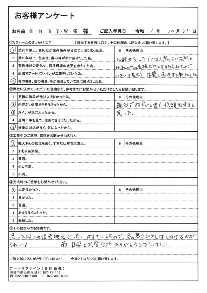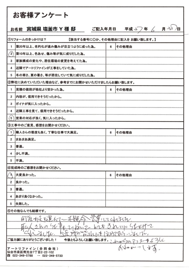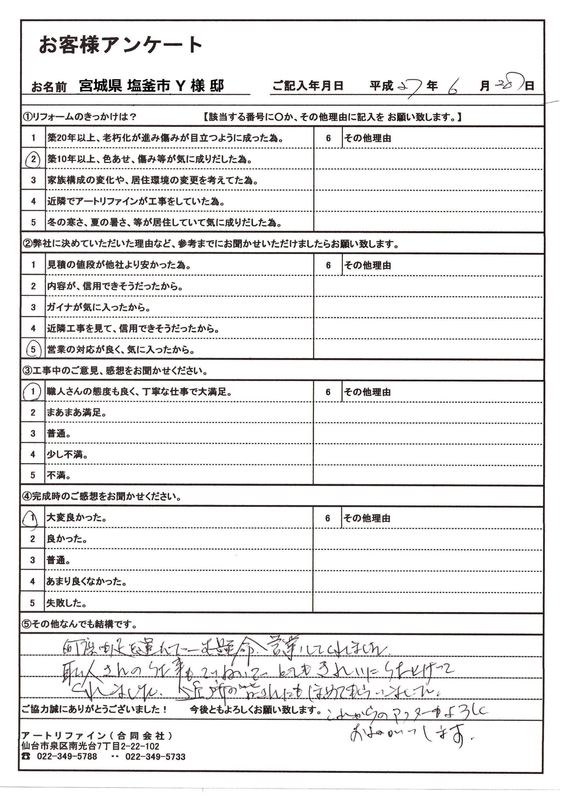宮城県塩釜市Y様