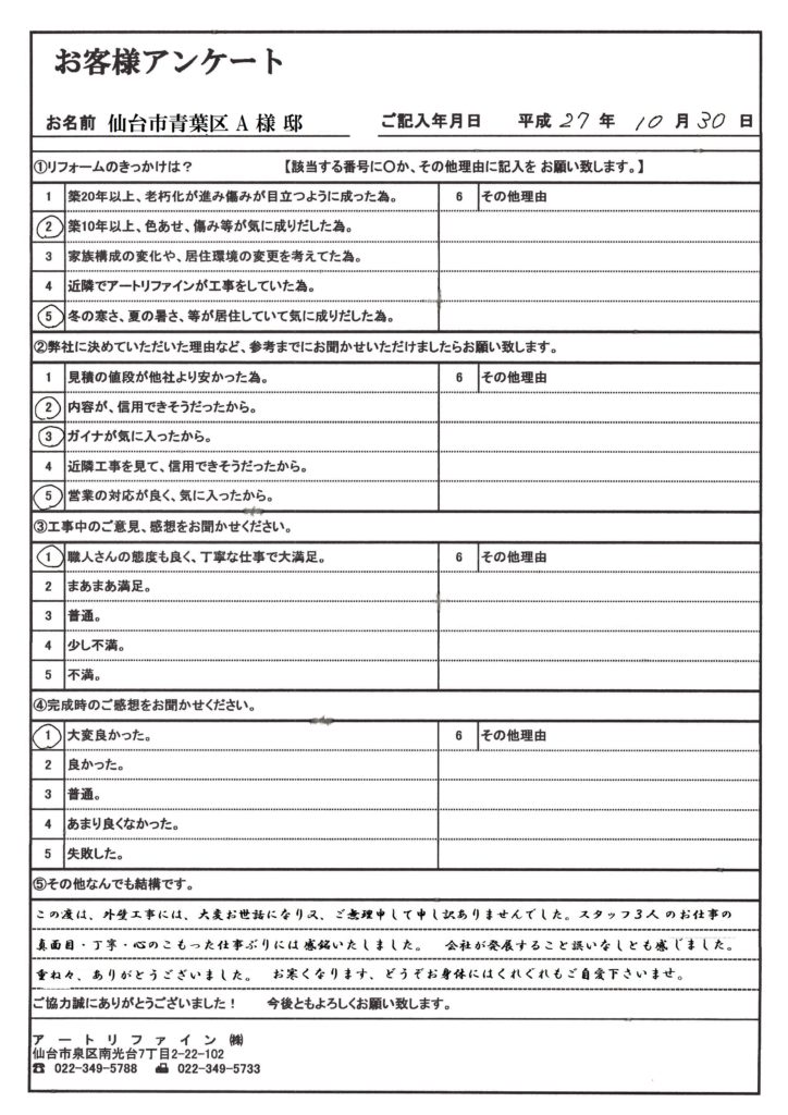 仙台市青葉区A様