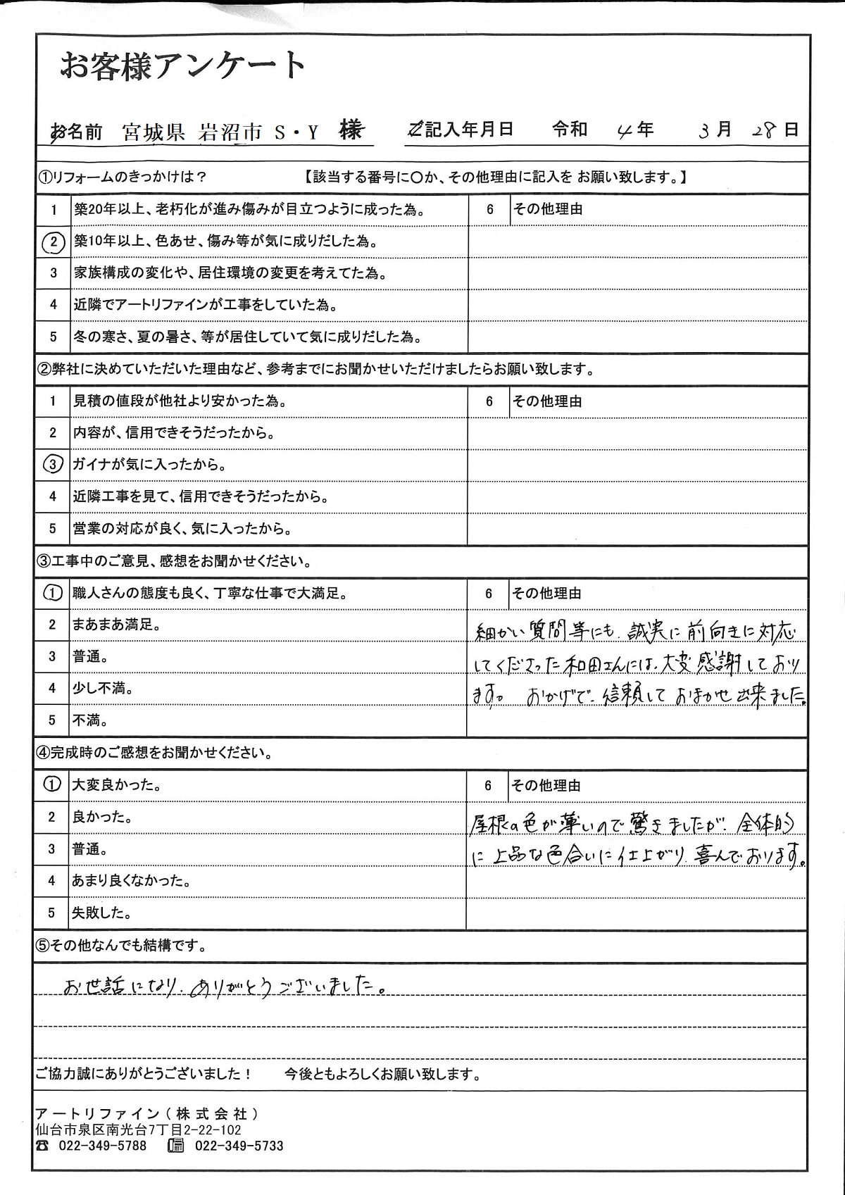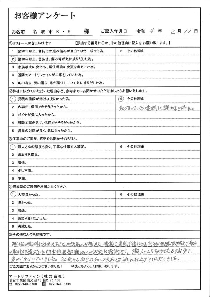 当社で施工させていただいたお客様の声を一部ご紹介いたします。